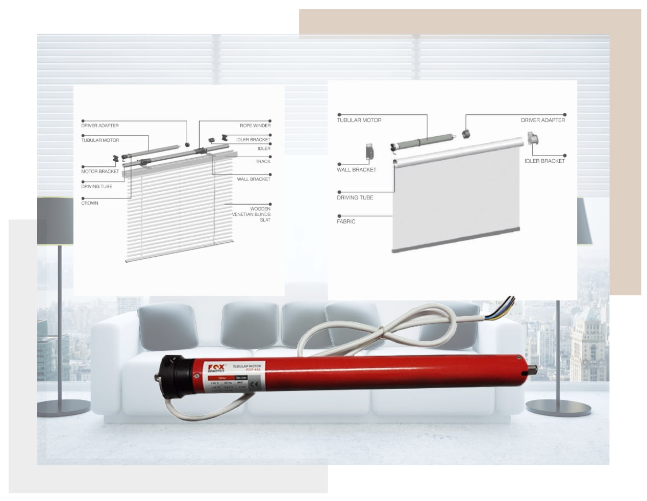 Fox Domotics offers a versatile range of tubular motors designed for blinds, shades, and curtain automation. Available in different models to suit your application and noise-level requirements: