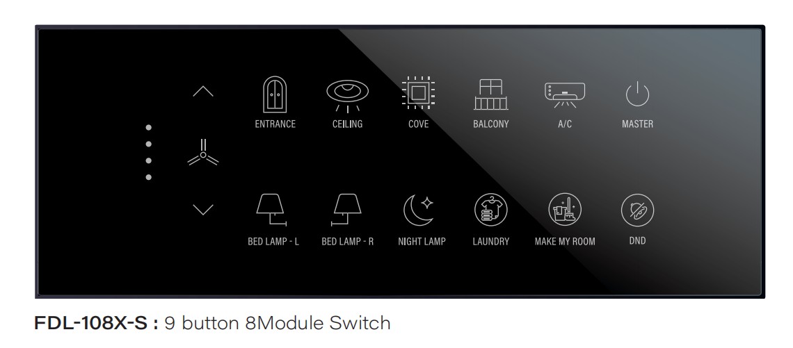 Hotels can choose any combination to perfectly match their lighting design and functional needs. All Fox Domotics touch switches are standalone and independent systems, ensuring easy installation and flexibility in deployment.