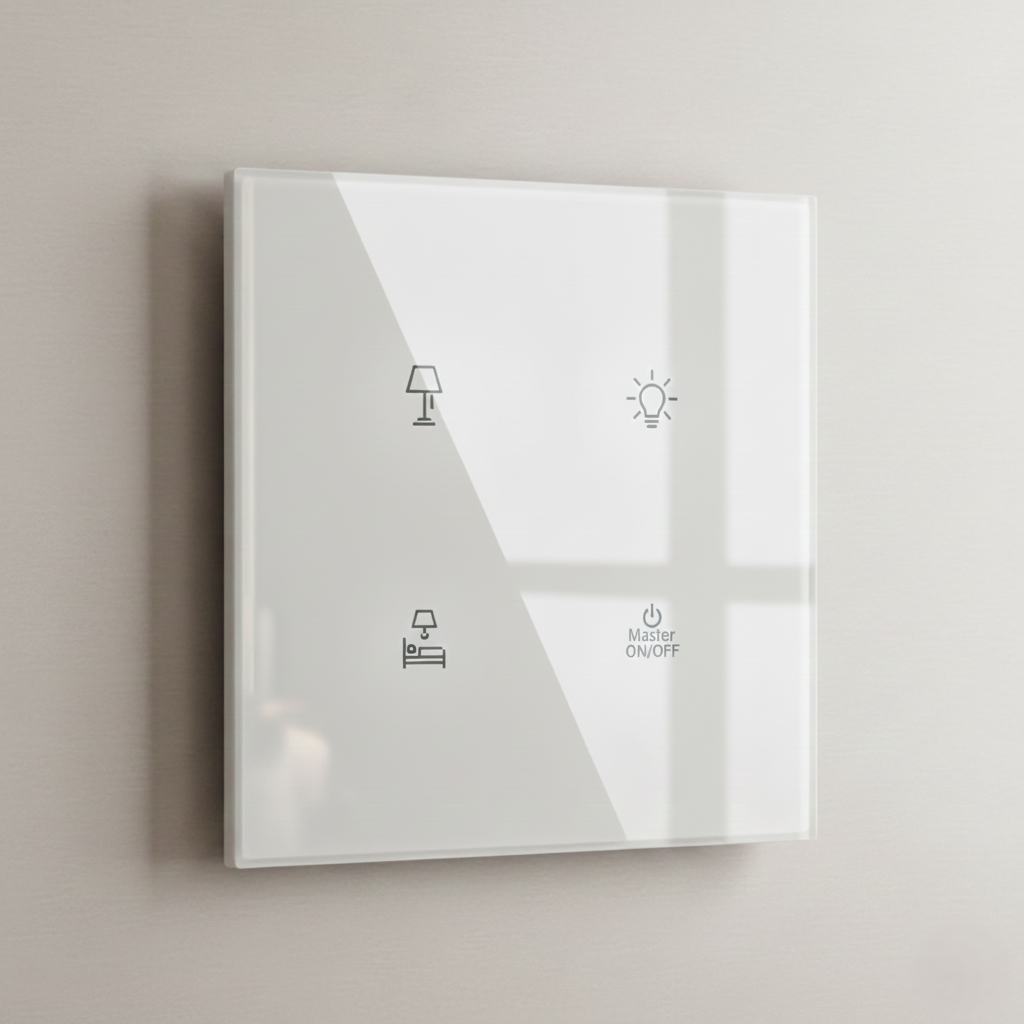 Fox Domotics manufactures premium touch switches designed specifically for light control in hotels. Our product range includes various sizes and configurations to meet different requirements, offering combinations of: