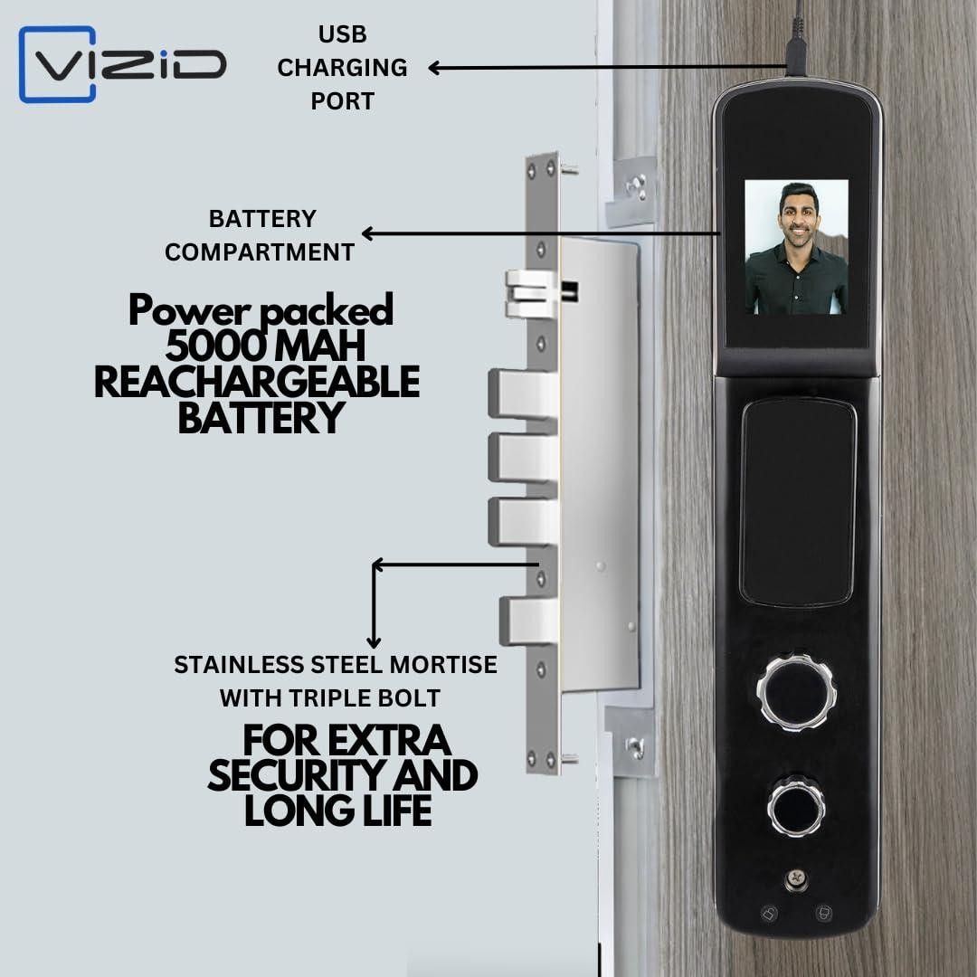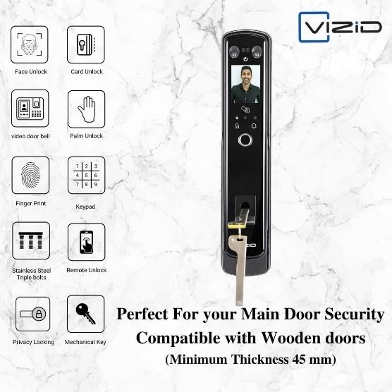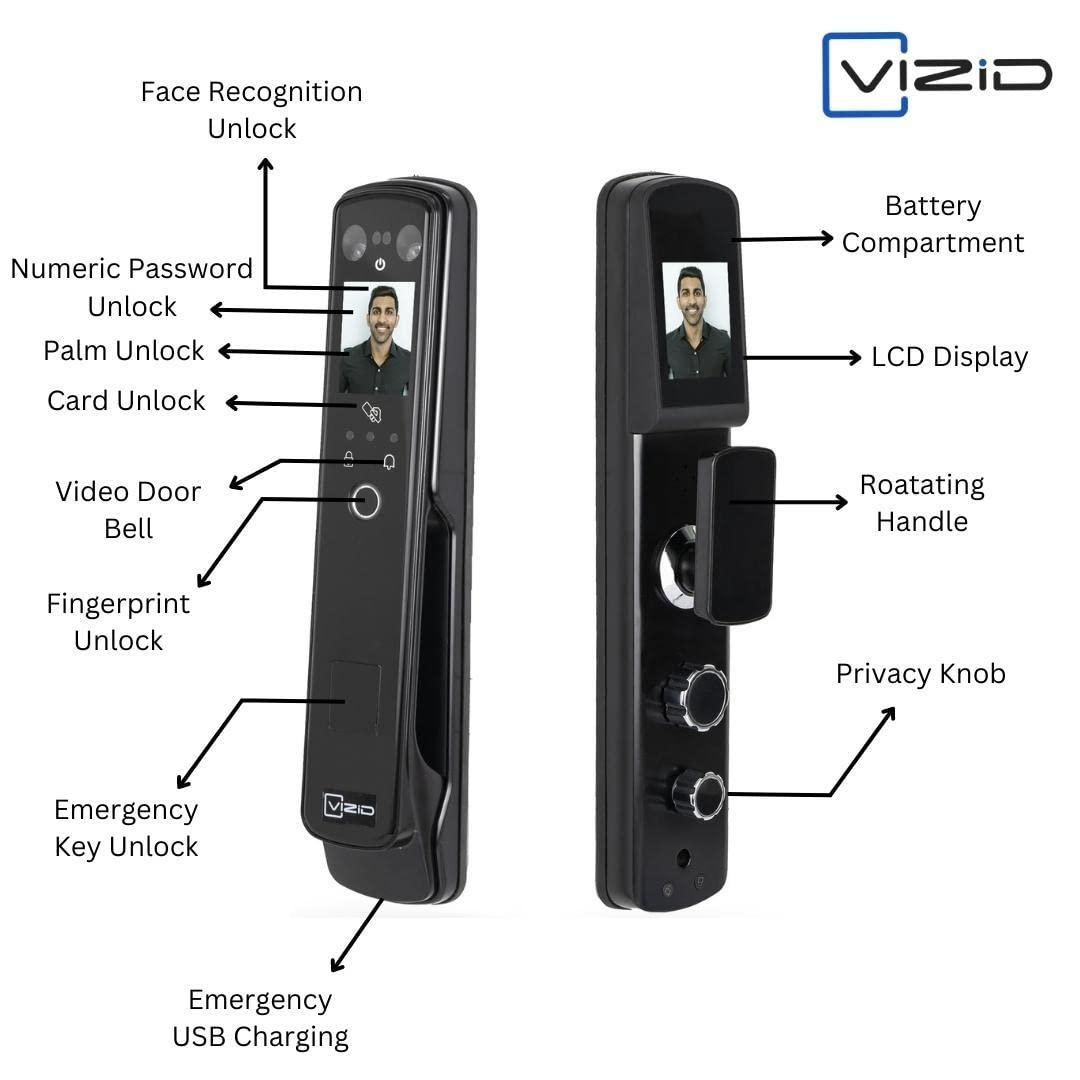WiFi Digital Door Lock with Inbuilt Video Door Bell & Smart App functions, 6 Ways to Open the Door, SMART APP For Remote Unlock,Hidden Fingerprint Sensor, Numeric Password Suitable For People With Unobvious Fingerprints, Temporary Password Time-limited password, suitable for many situations, Card Suitable For Elderly and Children To Carry Around,Emergency Key, Can Be Used Incase of drained battery
