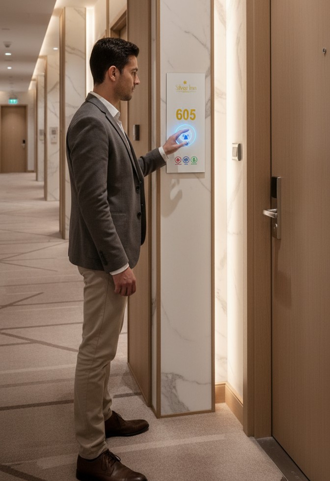 Fox Domotics’ Wireless DND-MUR System eliminates the need for complex cabling while delivering seamless guest service management for hotels. This solution integrates guest convenience and operational efficiency by providing clear service indications such as Do Not Disturb (DND), Make Up Room (MUR), and Laundry Request, without the hassle of running wires between panels.