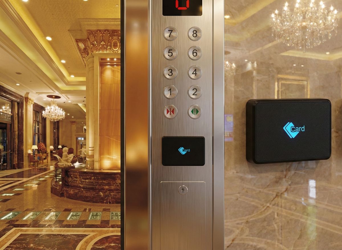 In order to control hotel elevator with guest card key, Fox Domotics company developed hotel elevator controller module,to realize to use card to control the elevator , the elevator control module need to be connected into the existed elevator controller,and make a square hole for 5 pluse 5 centimeter on the elevator shell. Simply installation, Separate software is no need to control the elevator, hotel software can control the elevator, when you make the guest card key, select elevator control is ok, simple operation, convenient management. Guest can arrive the appointed floor the card permitted, The elevator can realize time period control, this is for the hotel management, when the guest need to use the card , the guest just need to put the card on the reader, then the guest can enter the valid button, arrive the appointed floor, the floor the card no permitted the guest can’t arrival.