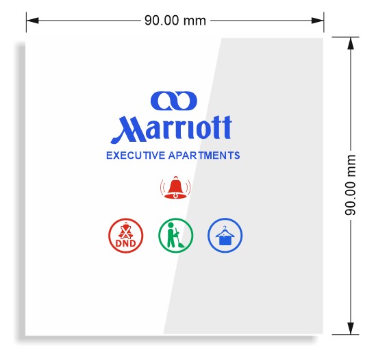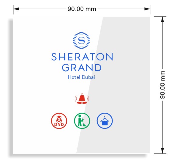 FDH-2MCP | 90mmX90mm | 85 - 230V AC 50/60Hz | 2 W | Glass Panel + Poly carbonate body | Wired/wireless | Dry Contact, RS485 or WiFi | Hotel Room | Blue, green, red, white, orange | Logo, Room Number, all Icons and Led color |